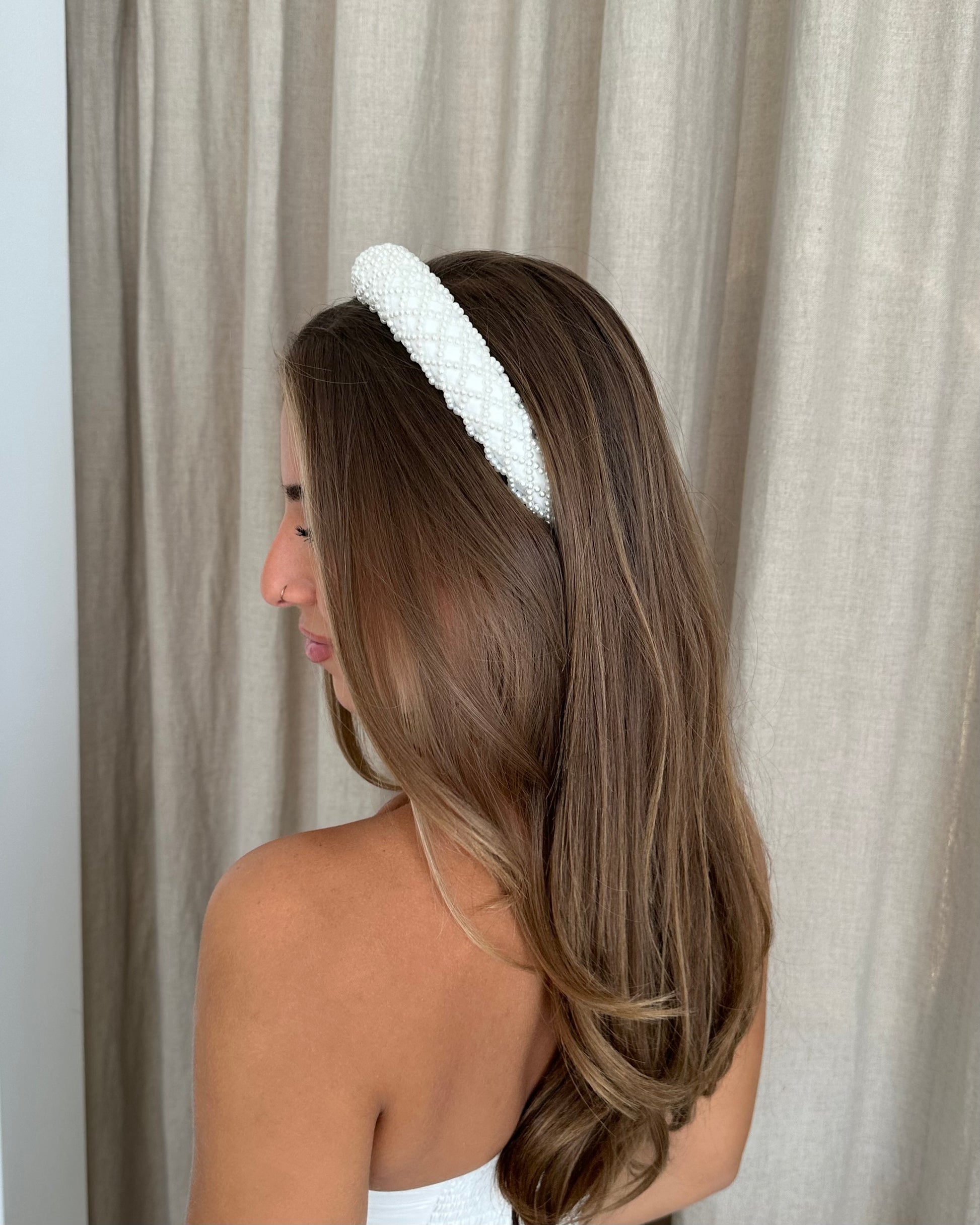 A pearl headband in White.